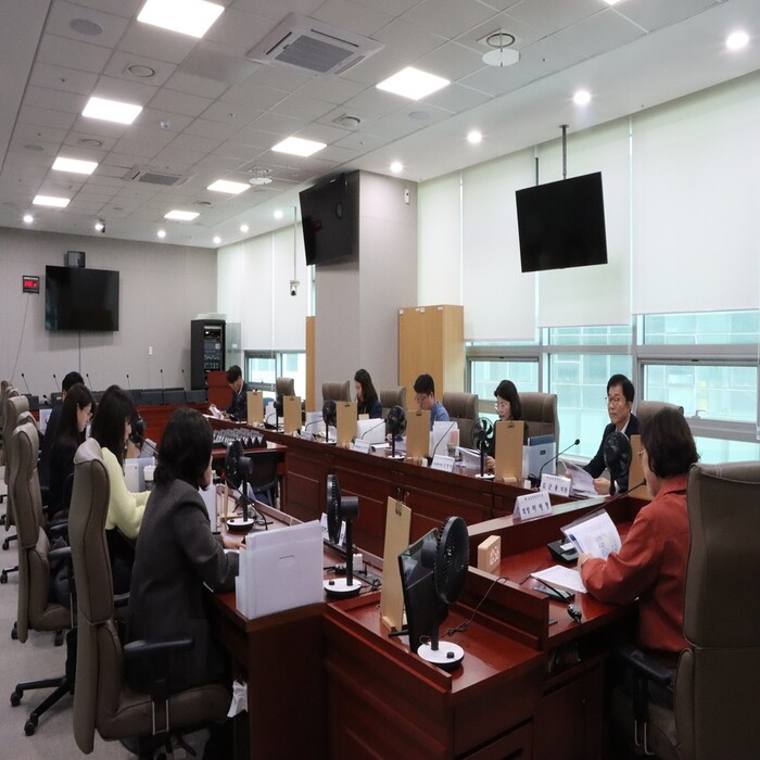이날 중간보고회에는 이애형 교육행정위원장, 김근용 부위원장을 비롯해 경기도교육청 중등교육과 담당 장학사와 연구용역 수행기관인 재단법인 한국재정경제연구원 연구진 등이 참석해 연구 진행 상황 보고와 연구 추진에 대한 시사점 및 방향성을 함께 토의했다.