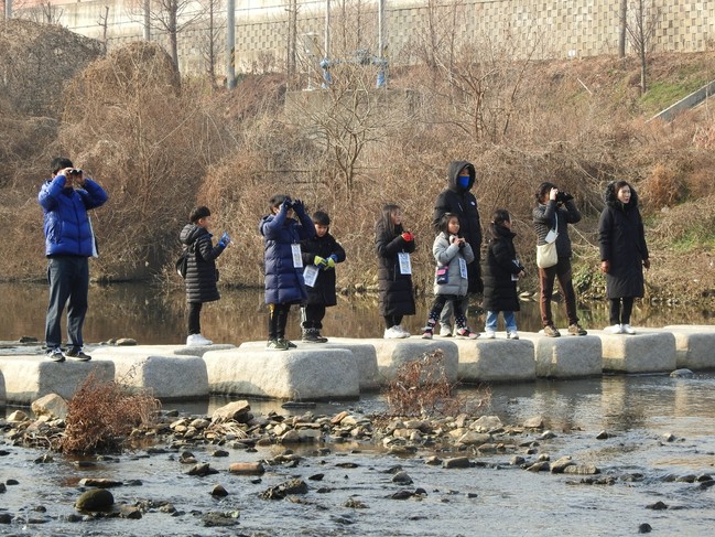 2020년 새해 첫 주말인 지난 4일, 겨울철새 탐조교실이 시작을 알렸다. 시민들의 방문을 마치 환영이라도 하듯 숨어 있던 수많은 철새들이 나와서 하천 중심을 가로지르며 유유히 헤엄치는 모습에 참가자들이 탄성을 질러댔다. 원앙을 처음 봤다는 한 참가자는“정말 책에서 본 거랑 똑같고 너무 아름답다”며 신기해했다.