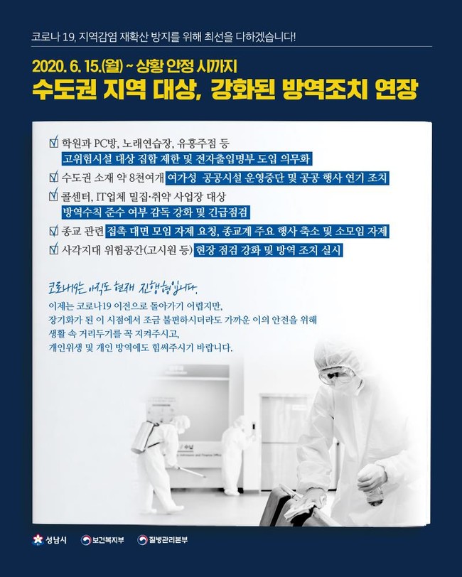 이는 최근 수도권에서 산발적인 감염이 잇따르자 지난 12일 정부에서 발표한 ‘수도권 방역강화 조치 연장 및 추가 방역조치’ 시행 방침에 따른 것이다.