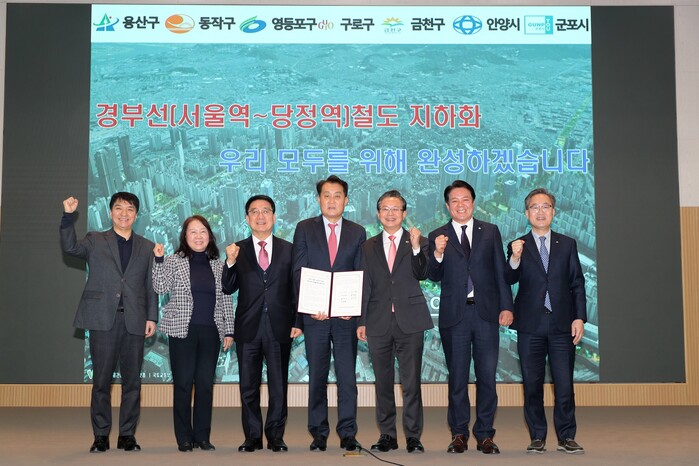 용산구(부구청장 김선수) 영등포구(구청장 최호권) 동작구(부구청장 천정욱) 구로구(구청장 문헌일) 금천구(구청장 유성훈) 안양시(시장 최대호) 군포시(시장 하은호) 등 7명의 자치단체장들은 지난 2월 정부가 발표한 경부선 지하화계획을 빠르게 사업화하기 위해서는 정부 선도사업으로 지정해야 한다고 주장했다.