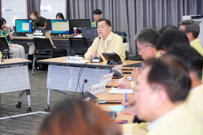 이재준 수원시장은 18일 2025년 을지연습 수원시 전시종합상황실인 시청 중회의실에서 ‘2025년 을지연습 최초 상황보고회’를 주재하고, “실전이라고 생각하고, 최선을 다해 을지연습에 임해달라”고 당부했다.