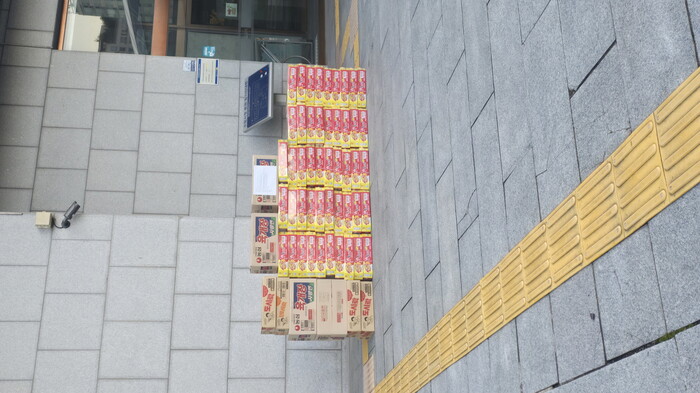 사진/익명의 기부자가 수원시청 앞에 두고 간 컵라면 상자.(사진제공=수원시)