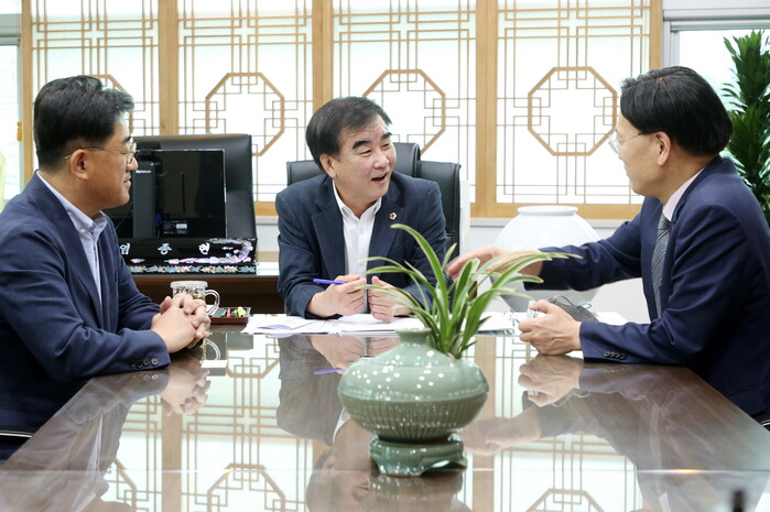 염종현 경기도의회 의장(더민주, 부천1)은 13일 의장 집무실에서 이회수 경기교통공사 사장 직무대행을 접견하고 ‘교통약자 이동편의 제고’, ‘대중교통 이용 활성화 시책’ 등 주요 교통정책 과제에 대해 논의했다.