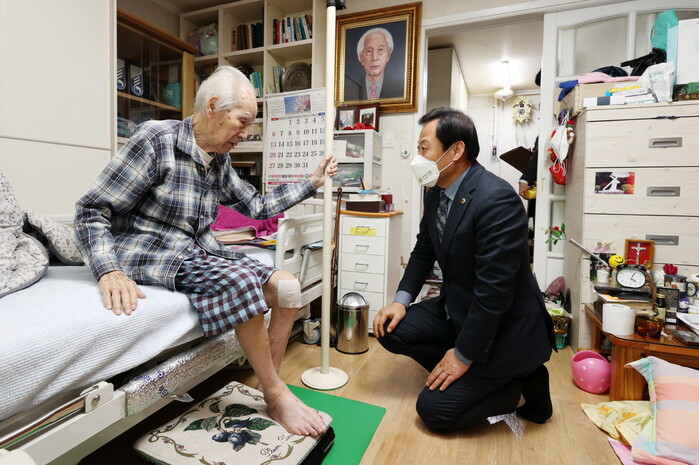 극심한 허리통증으로 거동이 불편한 이 선생은 홍 여사의 부축을 받아 무거운 몸을 일으켜 앉으며 장현국 의장을 반겼다. 홍 여사는 “잊지 않고 찾아줘서 고맙다”라는 인사를 여러 차례 건네며 반가움을 전했다.