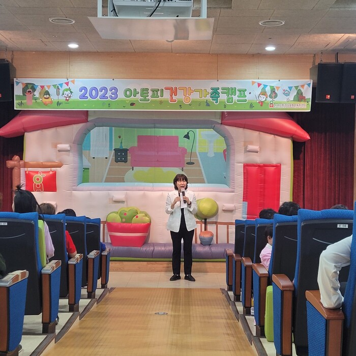 캠프는 아토피피부염·알레르기 비염 교육, 어린이 예방 인형극(아동 대상), 의료진 질환교육(부모 대상), 숲체험, 목욕·보습교육, 목욕·보습 실습 등으로 진행됐다.