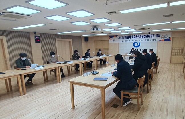 시는 지난 9일 상황실에서 위원장인 김남근 부시장과 위원 10명이 참석한 가운데 ‘2021년 하남시 학교급식지원 심의위원회’를 열고 올해 급식지원 규모를 확정했다고 밝혔다.