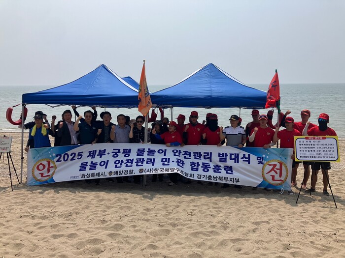 화성특례시(시장 정명근)가 지난 8일 제부리 해변에서 2025년 여름철 물놀이 안전관리 수상구조요원 발대식 및 민·관 합동훈련을 실시했다.