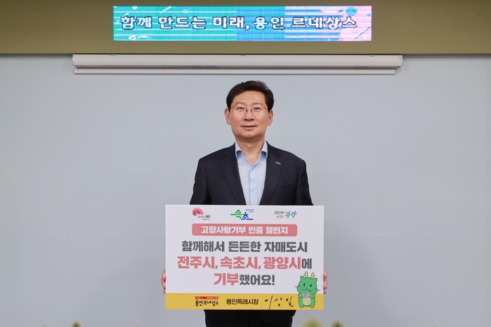 이상일 용인특례시장은 19일 고향사랑기부제를 활성화하기 위해 진행 중인 ‘고향사랑기부인증 챌린지’에 동참했다.