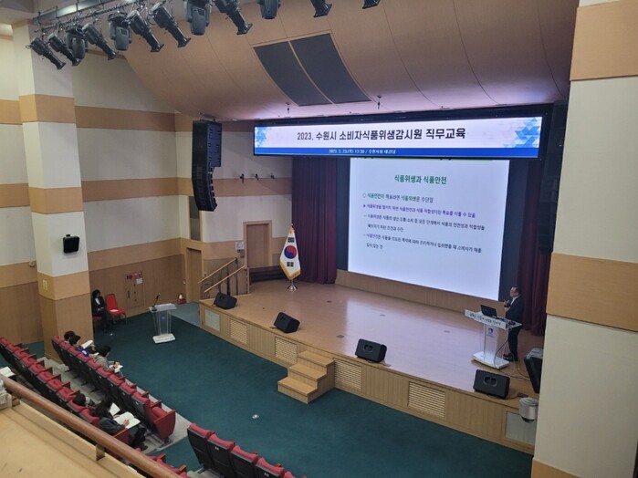 사진/수원시가 23일 ‘2023년 수원시 소비자식품위생감시원’ 직무교육을 열고 있다.(사진제공=수원시)