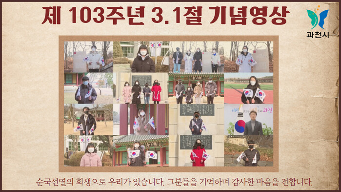 영상에서는 과천 청소년들이 기미독립선언서를 낭독하고, 과천시립소년소녀합창단이 삼일절 노래를 부르는 등 대한민국의 미래를 짊어질 다음 세대인 청소년들이 순국선열의 희생을 기리고, 나라사랑의 마음을 표현해 더욱 감동을 주었다.