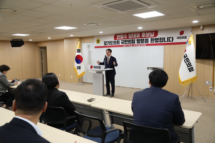 국민의힘 당권주자로 뛰고 있는 안철수 의원이 24일 경기도의회 국민의힘을 찾아 ‘수도권 필승론’을 부각하며 당심 지지 호소에 나섰다.