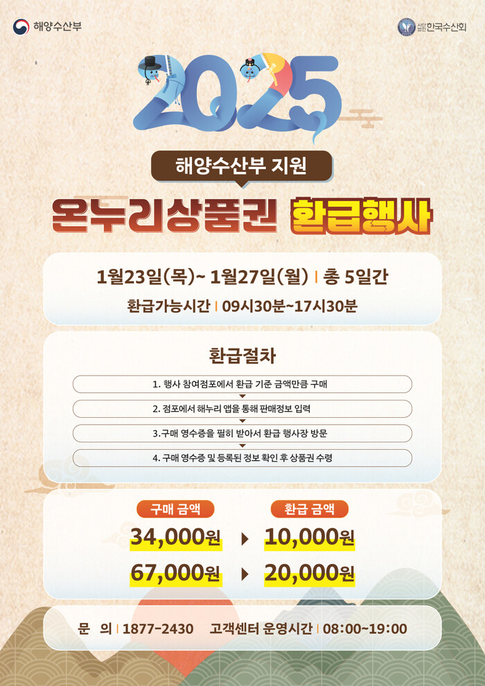 임병택 시흥시장은 “전통시장 활성화와 지역 수산물 소비에 큰 힘이 될 수 있도록 온누리상품권 환급행사에 많은 시민의 참여를 바란다”라고 말했다.