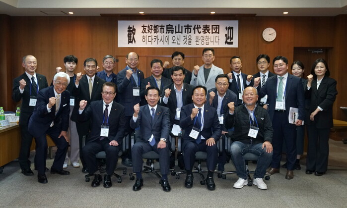 곧 이어진 환영식에는 히다카시 야가사키 데루오 시장, 가네코 아키라 부시장을 비롯한 간부 공직자, 히다카시 의회 스즈키 타케오 의장, 와다 요시히로 부의장, 나카무라 카즈오 교육위원회 교육장 등이 참석했다. 이들은 한글과 일본어가 병기된 명함을 오산시 대표단 한명 한명에게 직접 나눠주며 방문에 대한 감사의 뜻을 거듭 밝혔다.