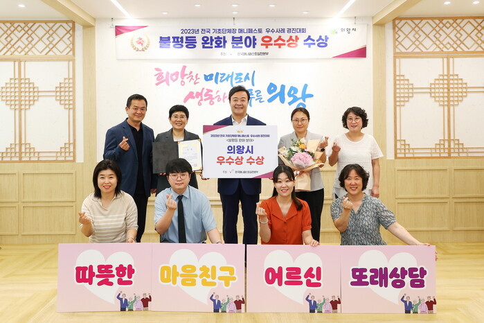 이번 대회는 전국 155개 기초 지방자치단체에서 7개 분야 364개 사례를 응모했으며, 의왕시는‘이웃이 되어 필요한 것을 연결해주는 의왕시 어르신 또래상담서비스’로 불평등 완화 분야 우수상을 차지했다.