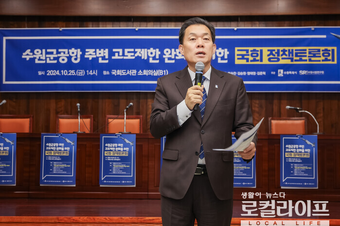 이어 "수원시 뿐만 아니라 군 공항이 있는 도시들은 고도 문제가 굉장히 어려운 문제로 되고 있다"며 "이 문제를 납득 가능하도록 법안으로도 해결하지만 정책적으로도 풀어나갔으면 하는 바람이다"라고 말했다.