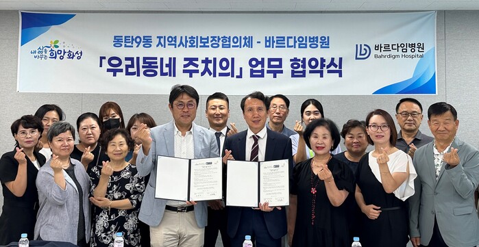 17일 화성시(시장 정명근) 동탄9동 지역사회보장협의체가 건강 취약 계층을 위한‘우리 동네 주치의’ 의료 나눔 업무 협약을 바르다임병원(원장 오광준)과 체결했다.