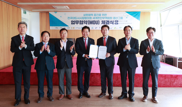 이에 앞서 시장단은 27일 오후 세계한인무역협회(월드옥타)ㆍ영산그룹과 상호협력을 하는 것을 골자로 하는 업무협약을 맺었다.