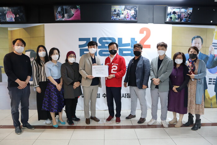 김용남 국민의힘 수원특례시장 후보는 13일, (사)한국주야간보호협회(회장 오현태) 임원과 수원시주야간보호연합회 회원 10여 명과 함께 정책간담회를 갖고, 돌봄 종사자들의 처우와 근로 여건 개선 및 돌봄 체계 강화 개선 방안 등에 대해 논의했다.
