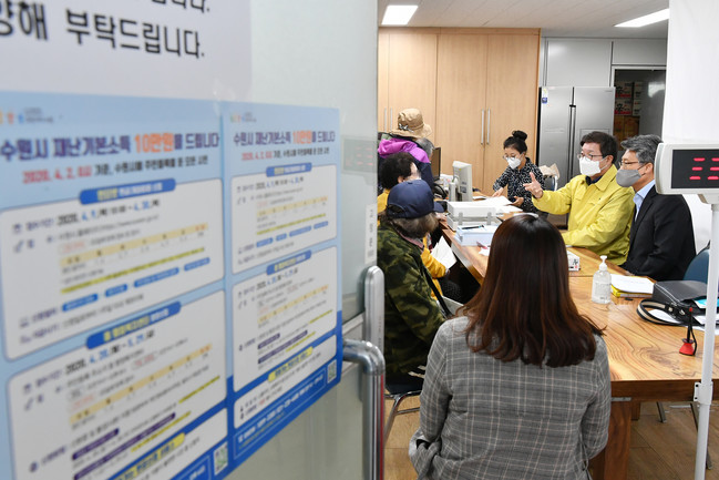 한편 수원시와 경기사회복지공동모금회는 9일부터 ‘재난기본소득’을 기부하는 ‘사랑의 열매와 함께 극복 수원’ 나눔 캠페인을 전개하고 있다. 모금한 기부금은 코로나19 사태로 피해를 본 시민들에게 신속하게 배분할 예정이다. 4월 19일 기준 기부금액은 1억 148만 원 6000원(400건)이다.