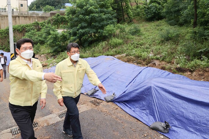 이 시장은 집중호우가 계속된 만큼 이날 예정돼 있던 취임식을 취소했다. 대신 오전 8시 현충탑을 참배한 후 곧바로 관내 수해 현장을 찾아 상황을 점검하고 대책 마련을 지시했다.
