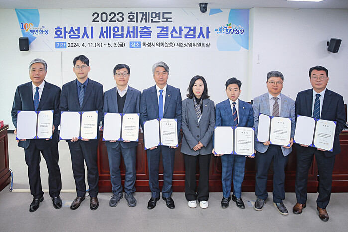 한편 이날 위촉된 결산검사 위원은 4월 11일부터 5월 3일까지, 총 23일간 화성시에서 작성한 2023 회계연도 결산서에 대한 세입·세출, 재무제표, 성과보고서 등을 종합적으로 검사하여 오는 6월에 예정된 제232회 제1차 정례회에서 2023 회계연도 결산을 최종 심사해 승인할 예정이다.