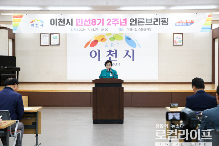 | ▲ 김경희 이천시장은 취임 2주년 기자회견을 통해 "이천시 발전을 위해 일자리·육아·교육·복지·청년·안전·문화·농촌·교통 등 각 분야별 역점 과제 추진에 최선을 다하겠다"고 밝혔다. (사진제공=이천시) |