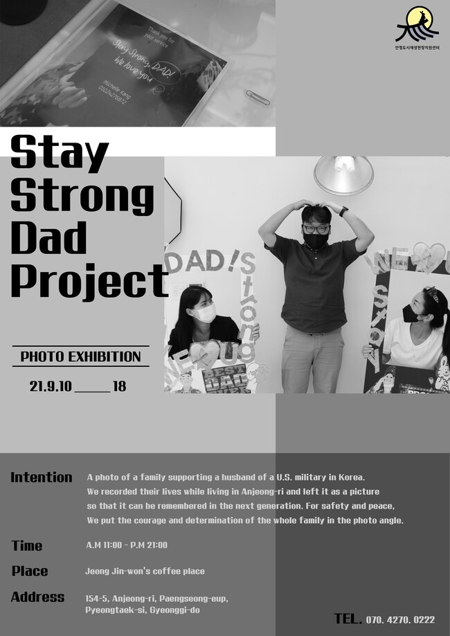 <안정 도시재생 현장지원센터>는 평택시 팽성읍 안정리에 거주하는 주한 미군과 그들을 응원하는 가족의 모습을 담은 사진전 Stay Strong Dad! (아빠 힘내세요!) 프로젝트를 진행할 예정이다.