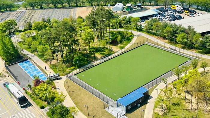 사진/ 대부둑공원 내 론볼 연습경기장과 장애인 주차장(사진제공=수원시)