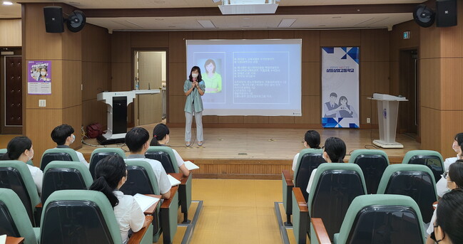 사진/ 지난 7월 삼일상업고등학교에서 진행된 ‘찾아가는 취업 특강’(사진제공=수원시)