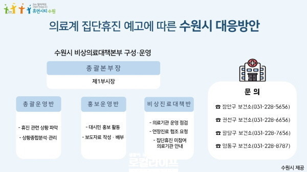 [수원=로컬라이프] 김민정 기자 = 이달 14일로 예고된 의료계 집단휴진에 대비해 수원시가 비상대책을 마련해 실행한다.