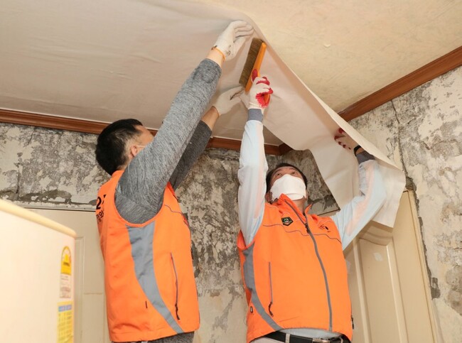 [로컬라이프] 최대호 안양시장은 안양시 만안구 박달2동의 한 독거노인 가정을 방문해 습기 찬 낡은 벽지를 뜯어내고 새 벽지로 벽과 천장을 도배했다면서, 우중충 하기만 하던 방안은 어느 새 환하게 빛이 나기 시작했다고 말했다.