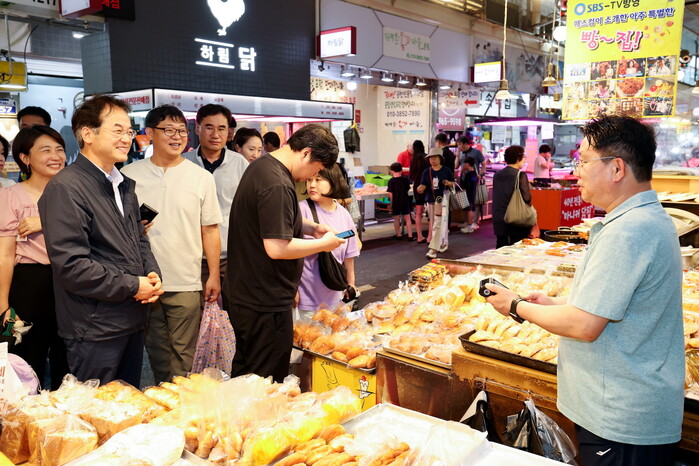 이날 이동환 시장은 원당시장 상인들과 인사를 나누며 무더운 여름철 건강관리에 유의하길 당부했다.