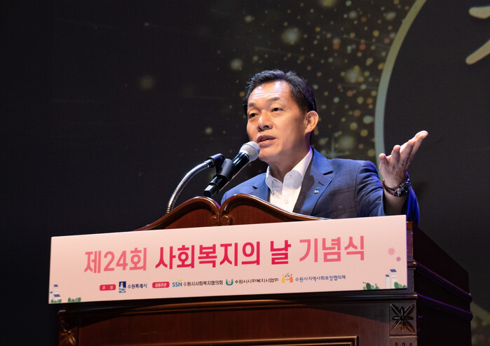 수원시가 주최하고 수원시사회복지협의회·수원시사회복자사협회·수원시지역사회보장협의체가 공동주관한 제24회 사회복지의 날(9월 7일) 기념식은 사회복지의 날 기념 유공 표창 수여, 이재준 시장의 격려사, 김기정 수원특례시의회 의장의 축사, 사회복지사업 윤리선언문 낭독, 마술사 이은결의 공연 등으로 진행됐다.