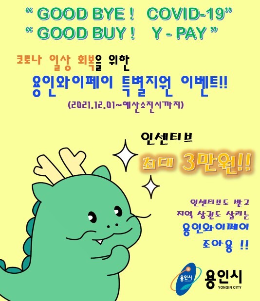 용인시가 코로나19 일상 회복 지원을 위해 12월 용인와이페이 인센티브를 최대 3만원까지 지급하는 특별 이벤트를 연다.