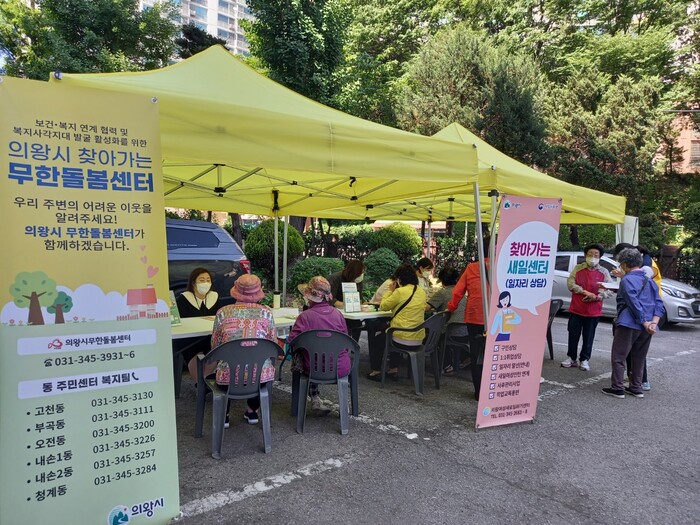 의왕시는 복지 사각지대 발굴을 위해 지난 26일 오전동에 위치한 신안아파트 단지 내에서 찾아가는 무한돌봄센터 활동을 진행했다고 밝혔다.