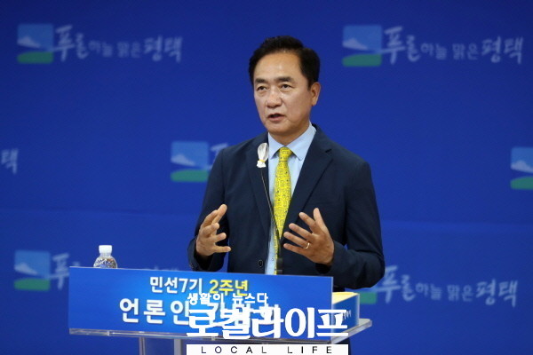 정장선 평택시장은 민선7기 취임 2주년 언론인 간담회를 통해 그동안의 시정 성과와 향후 시정 운영 방향에 대해 밝혔다. 사진은 정장선 시장의 취임 2주년 간담회 모습. (사진제공=평택시)