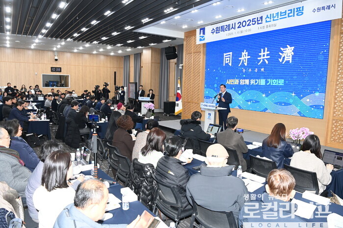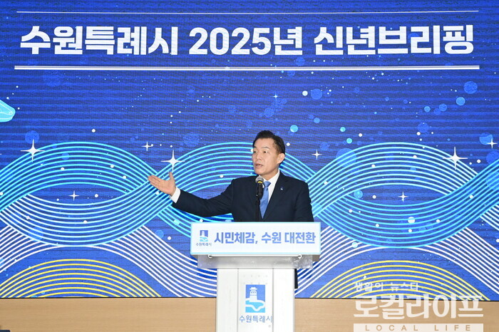| ▲ 이재준 수원특례시장이 신년 브리핑을 갖고 '2025년 시정 방향에 대해 설명'하고 있다. (사진제공=수원특례시) |