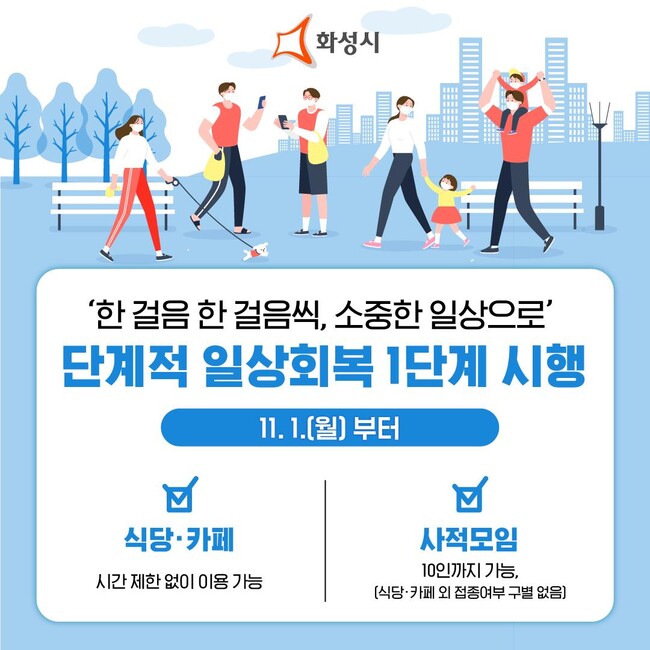 아울러 11월 1일부터 시행되는 ‘단계적 일상회복’은 교통사고나 화재, 산업현장의 위험처럼 사회적 합의와 방역수칙을 준수하면 코로나19를 비교적 안전하게 관리하며 생활할 수 있는 단계로 들어선다는 의미라고 강조했다.