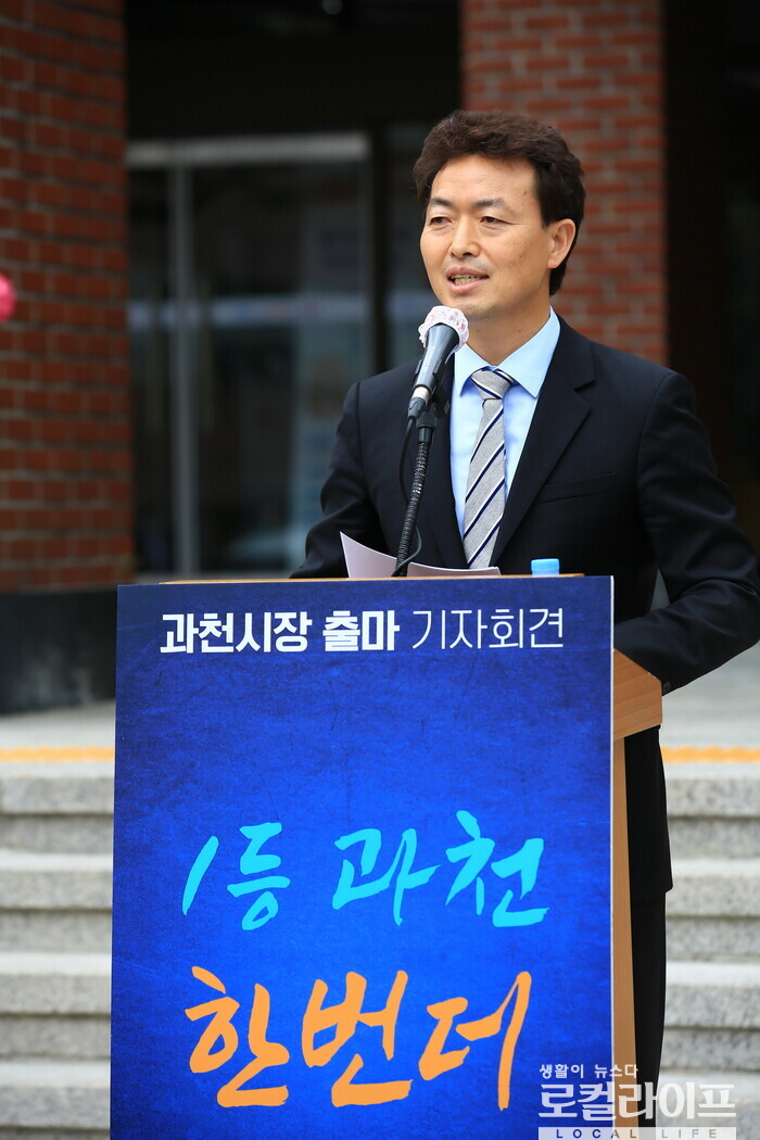 출마 일성은 "살기 좋은 도시 1위, 과천 건설"이다.