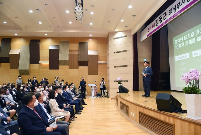 김동근 시장은 비전발표에서 “시민의 삶이 바뀌기 위해서는 도시가 바뀌어야 한다. 도시에 대한 새로운 기준과 방향 설정이 필요하다”라며 “내 삶을 바꾸는 도시, 의정부를 만들겠다. 우리가 살고 있는 동네에서부터 작은 변화들을 만들어가겠다”라고 비전을 제시했다.