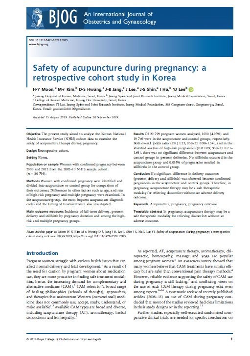 「Safety of acupuncture during pregnancy: A retrospective cohort study in Korea」