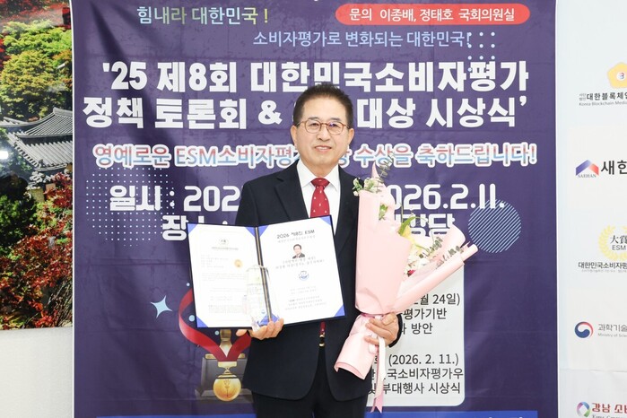 지난 11일(수), 국회 도서관에서 열린 2026 제8회 ESM대한민국소비자평가우수대상 정책토론회 및 시상식에서 광주시의회 허경행 의장이 지방자치/행정 부문 대상을 수상했다.