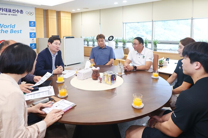이 시장은 선수들과 함께 장재근 국가대표 선수촌장을 만나 대한민국 스포츠 발전 방안, 용인시가 건립을 추진하는 반다비 체육센터에 국가대표 선수촌의 우수한 시설을 접목하는 방안 등에 대해 의견을 교환했다.