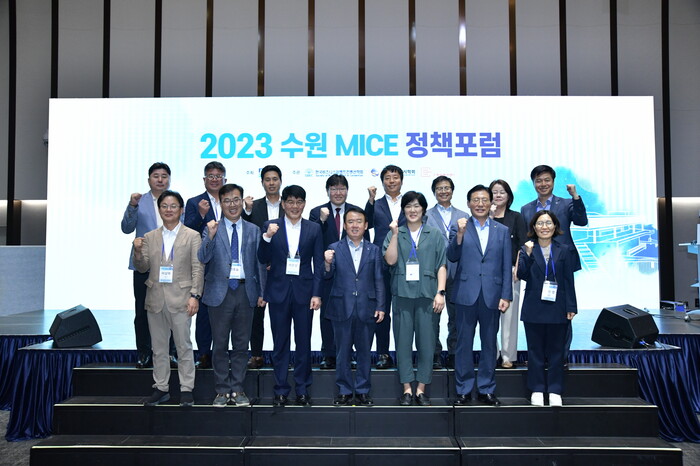 사진/2023 수원 MICE 정책포럼 참석자들이 함께하고 있다.(사진제공=수원시)