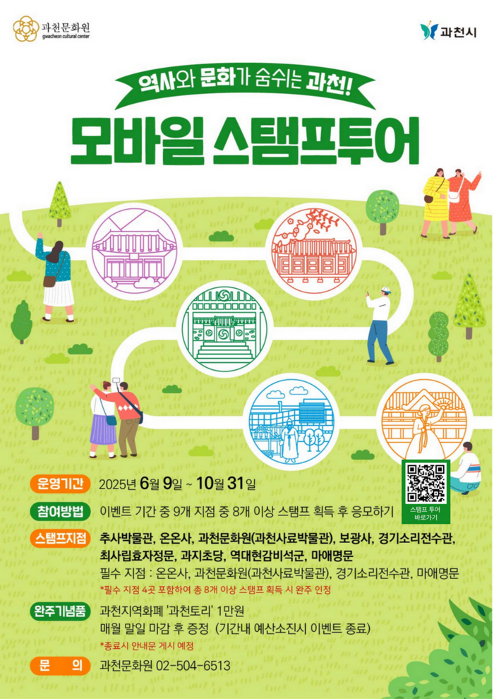 과천시는 6월 9일부터 10월 31일까지 ‘역사와 문화가 숨 쉬는 과천! 모바일 스탬프 투어’를 운영한다고 밝혔다.