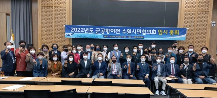 [로컬라이프] 군공항이전 수원시민협의회는 26일 ‘2022년 임시총회’를 열어 “경기국제공항 유치 시민협의회”로 명칭을 변경하기로 결정하고, 임원진 재선출, 운영규약 개정 등도 함께 의결했다.