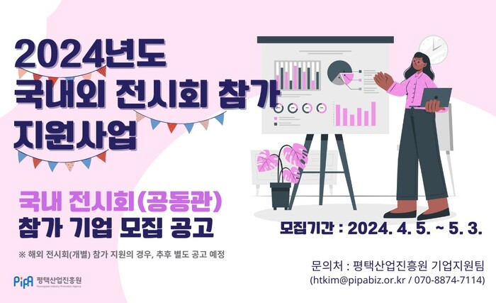 재단법인 평택산업진흥원(원장 이학주, 이하 진흥원)은 평택 내 중소기업의 국제 시장 진출 및 판로개척 기회 마련과 국내·외 시장경쟁력 강화를 위해 ‘2024 글로벌 공급망 혁신대전’ 평택시 공동관 참가 기업 20개 사를 오는 5월 3일까지 모집한다고 밝혔다.