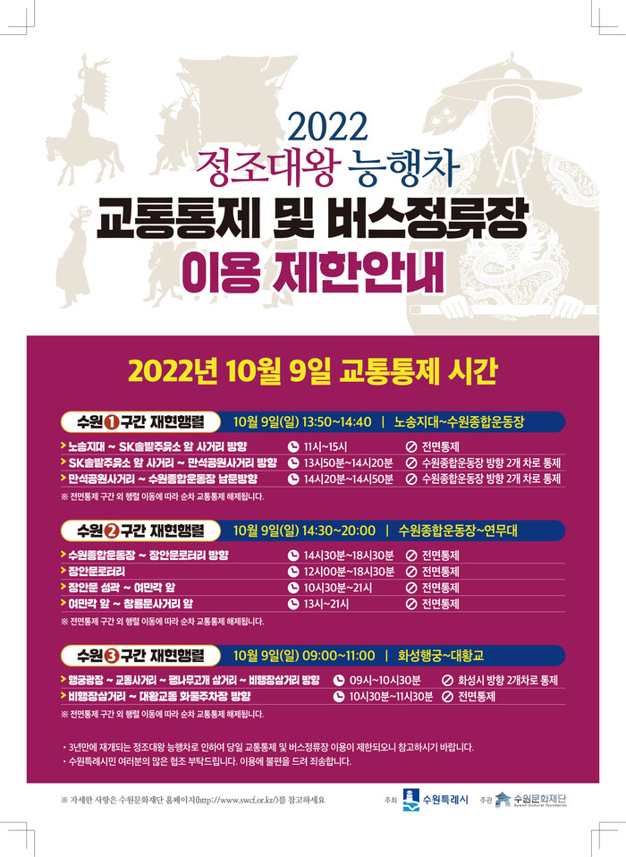 사진/2022 정조대왕 능행차 교통통제 및 버스정류장 이용 제한 안내(수원시 제공)