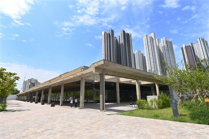 건물 가운데는 벽이 없는 야외다. 자유롭게 쉴 수 있는 계단형 공간과 광장이 자연스럽게 공원과 연결된다. 한쪽에는 총 4대의 아카이브 영상 전시기기가 있다. ▲연초제조창 건립사(1967~1971) ▲연초제조창 30년(1970~2004) ▲버려진 건물의 재생(2019~2121) ▲산업유산에서 시민을 위한 공간으로(2021~) 등 대유평의 변천사를 볼 수 있는 기기다.