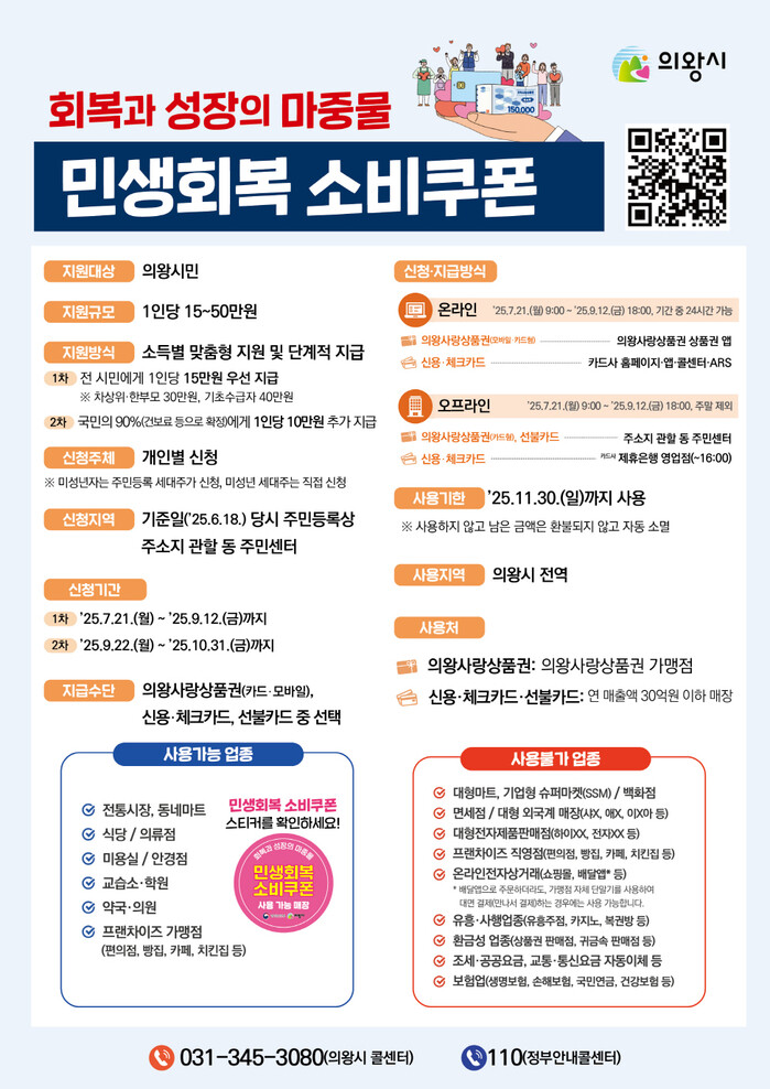 김성제 의왕시장은 “시민들이 빠짐없이 소비쿠폰을 받을 수 있도록 적극적인 안내와 신속한 지급에 총력을 다하겠다”고 전했다.